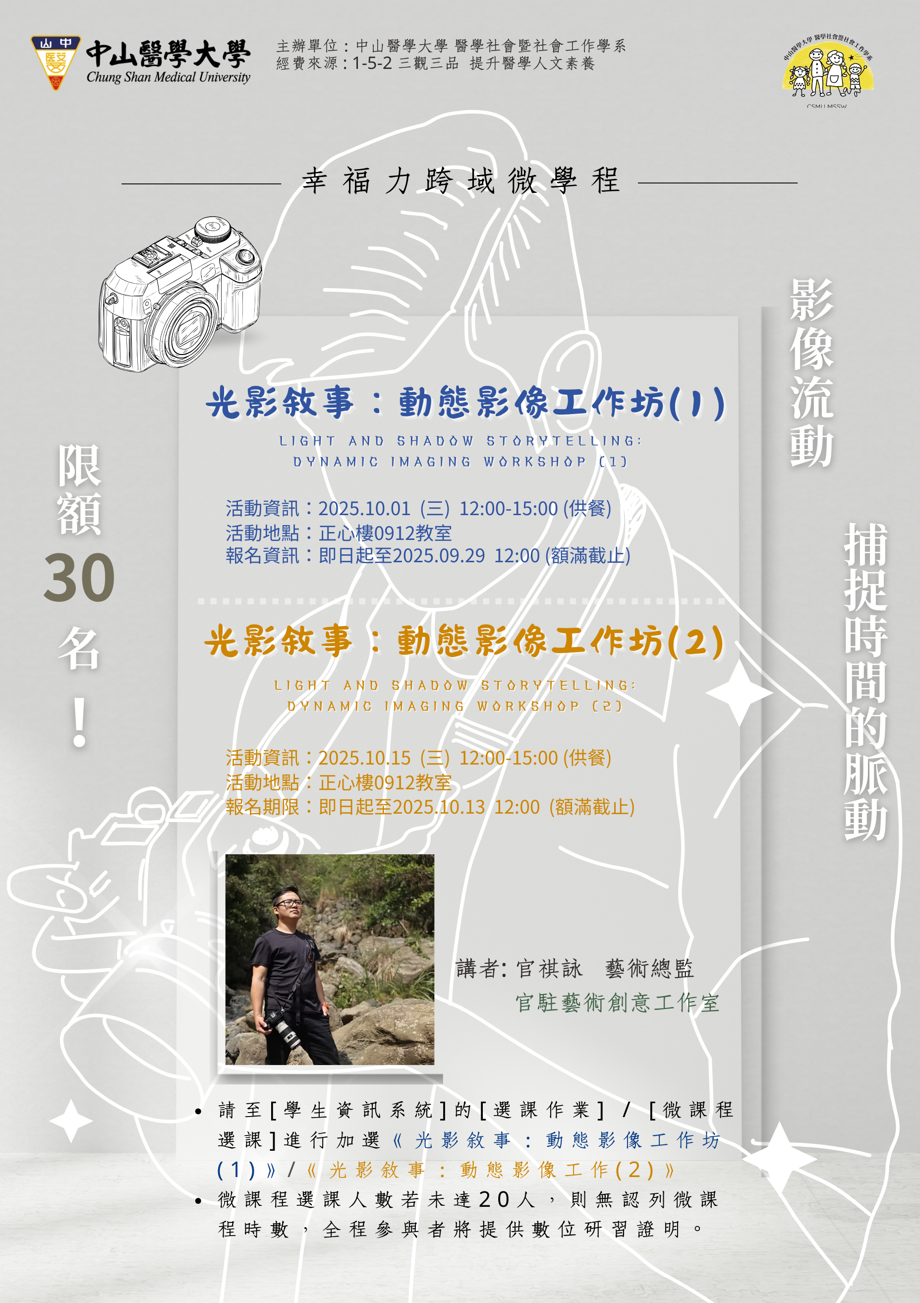 【微學程】114-1光影敘事:動態影響工作坊(114/10/01及114/10/15 12:00~15:10)