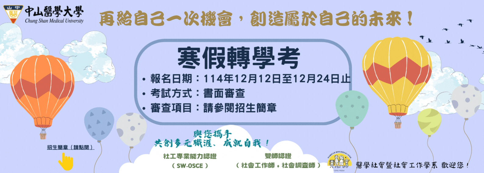 【轉學考招生】114學年度學士班寒假轉學考試招生簡章公告
